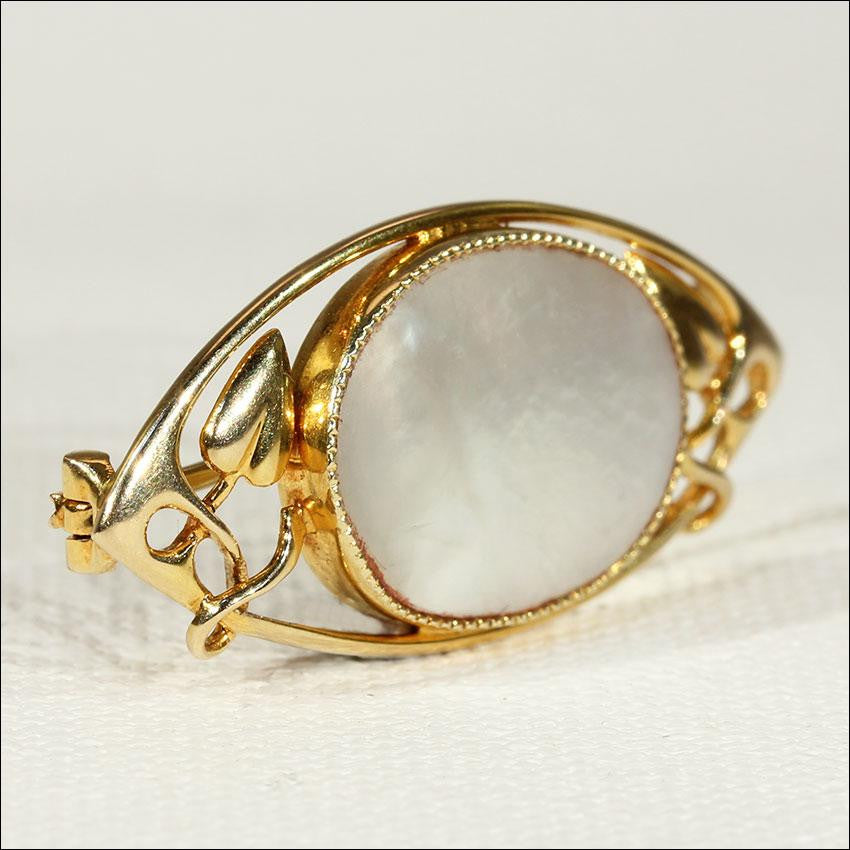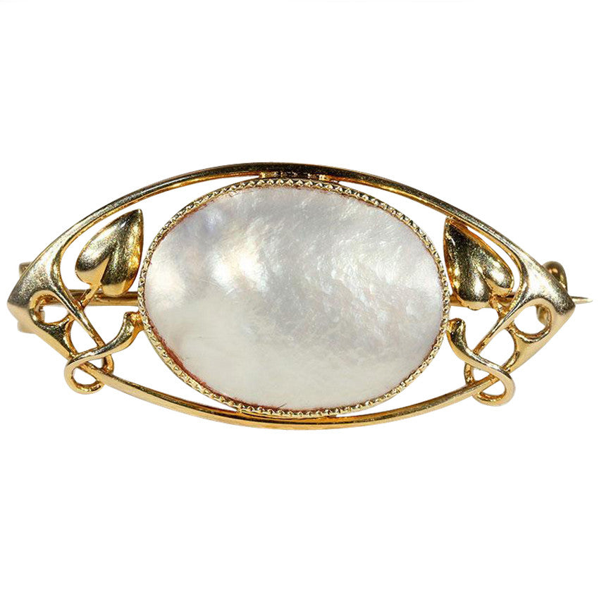 Antique Murrle Bennett & Co. Arts & Crafts Art Nouveau Mother of Pearl and 15k Gold Brooch Pin