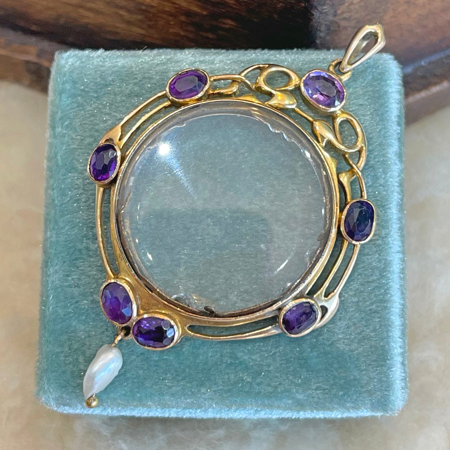 Art Nouveau Amethyst Pearl Frame Locket Gold