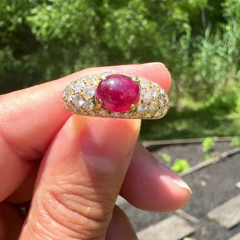 Stunning Vintage Cabochon Ruby and Diamond Ring in 18k Gold