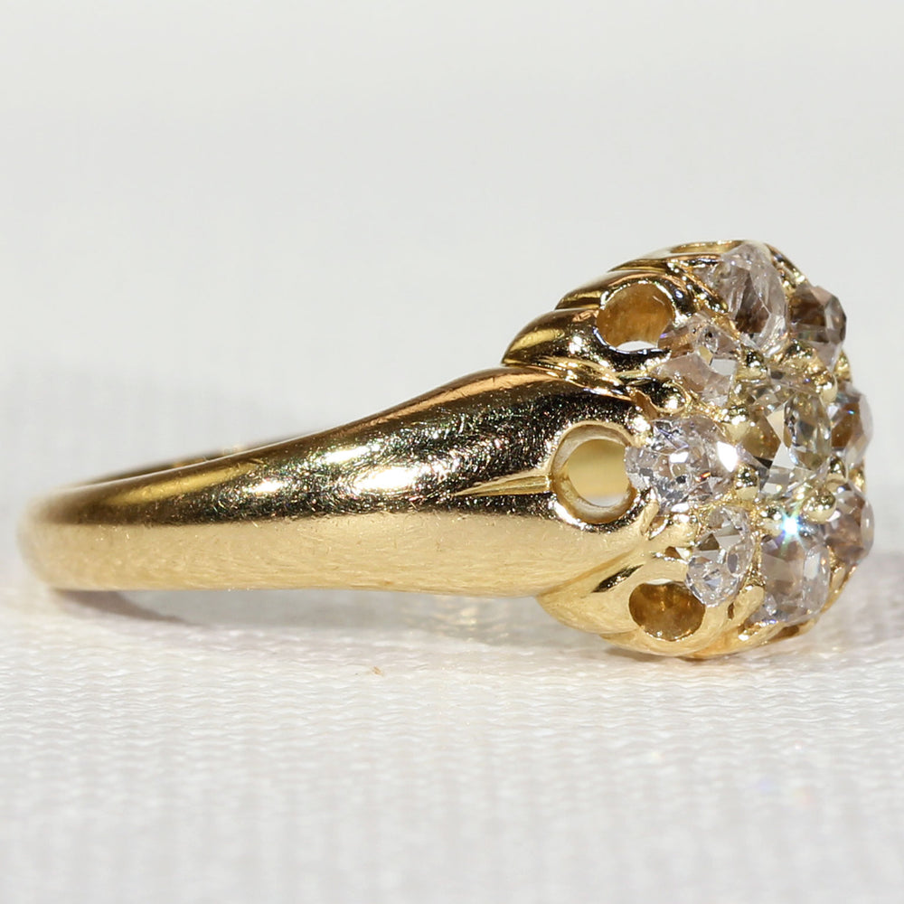 Victorian Cushion Cut Diamond Cluster Ring in 18k Gold
