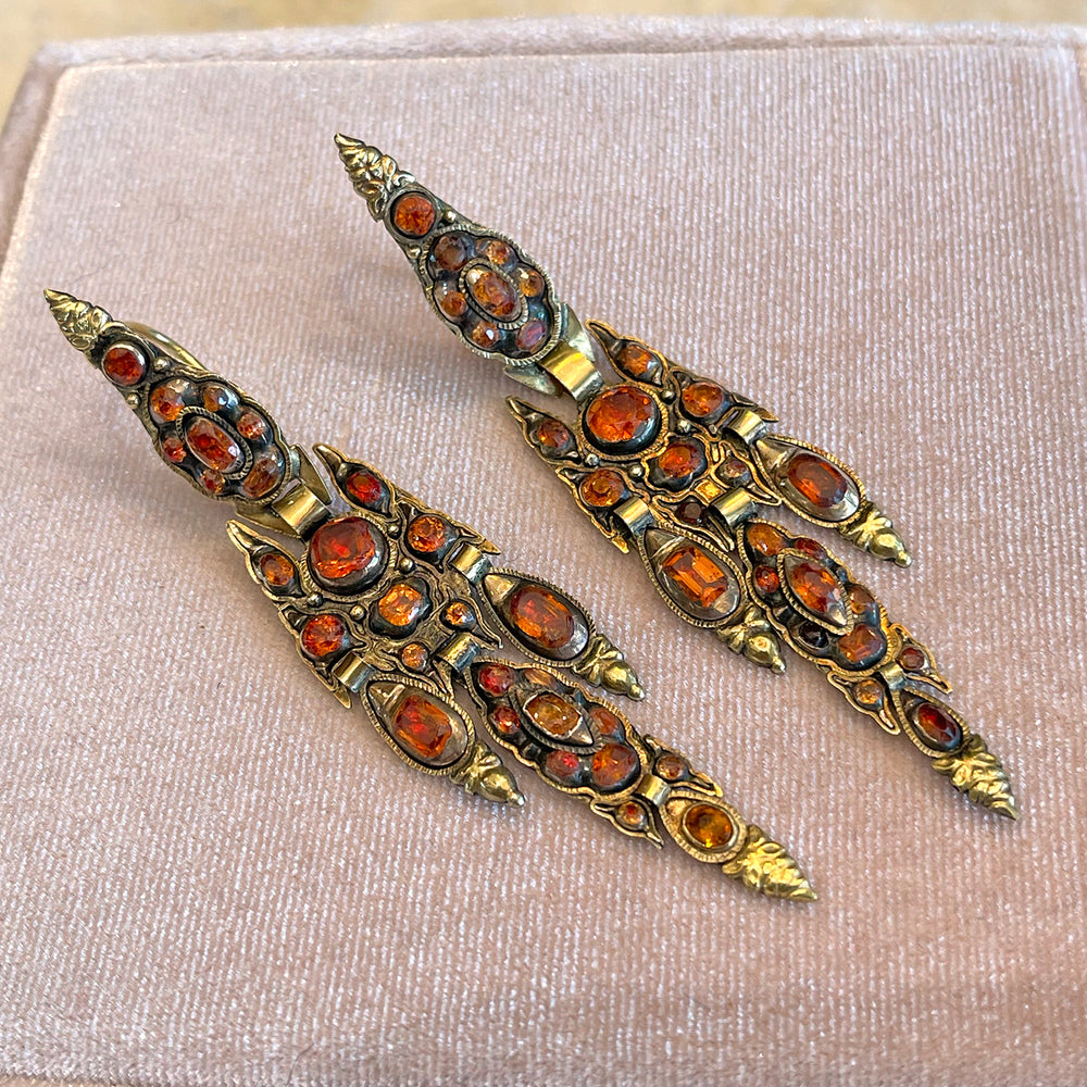 Antique Iberian Spessartine Garnet Earrings Georgian Era 14k Gold