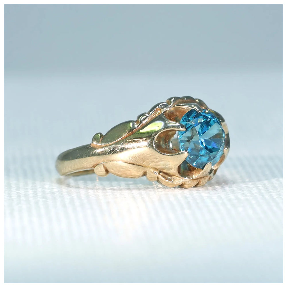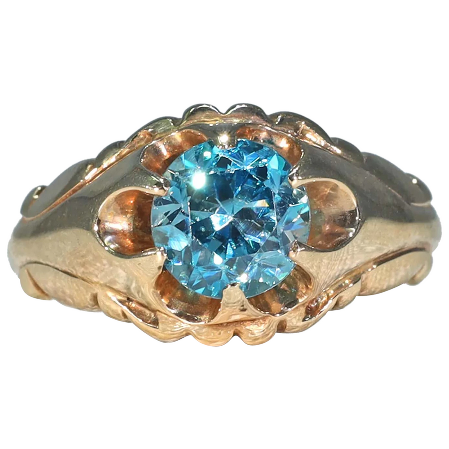 Edwardian Era Blue Zircon Solitaire Ring 14k Gold