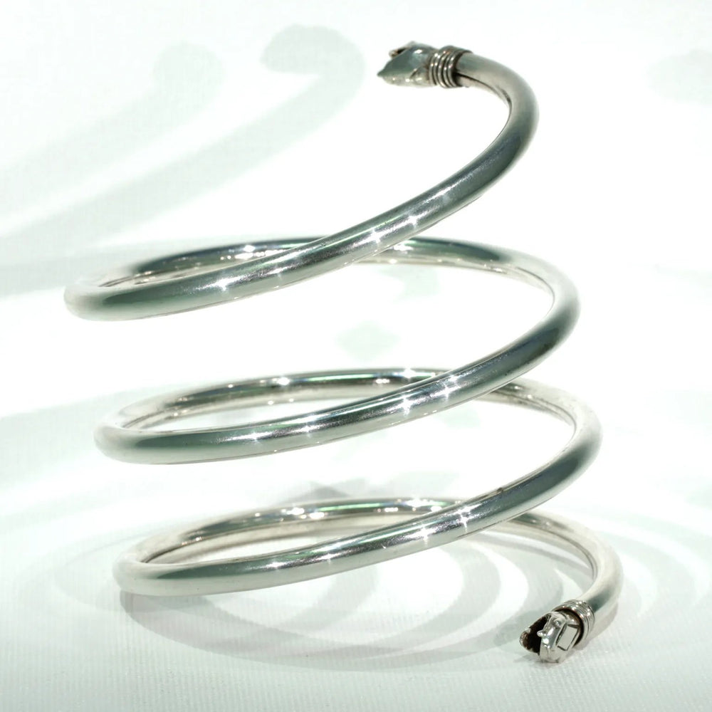 Vintage Mexican Silver Snake Bangle Bracelet Coil