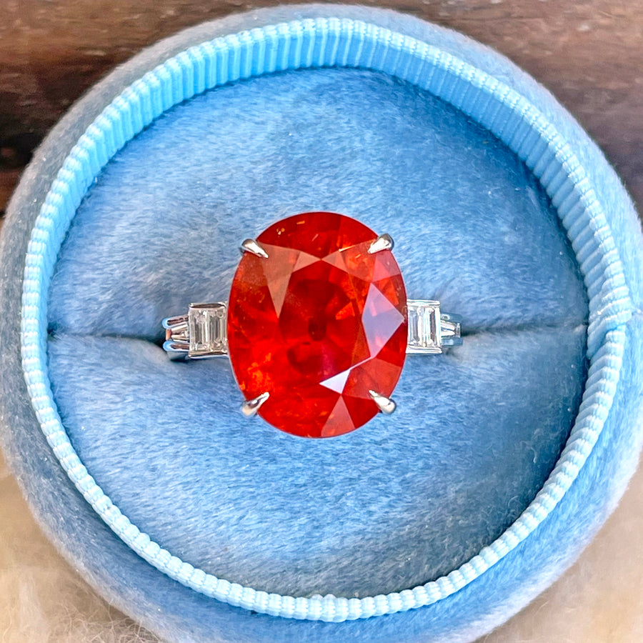 This bright orange gem might resemble a fire opal but it’s actually even more rare and precious, it is a Spessartine Garnet of the most fiery orange-red hue. It truly exudes a magnetic allure, and captures the eye with its vibrant and vivid hue, a testament to the ability of nature to create mesmerizing beauty!