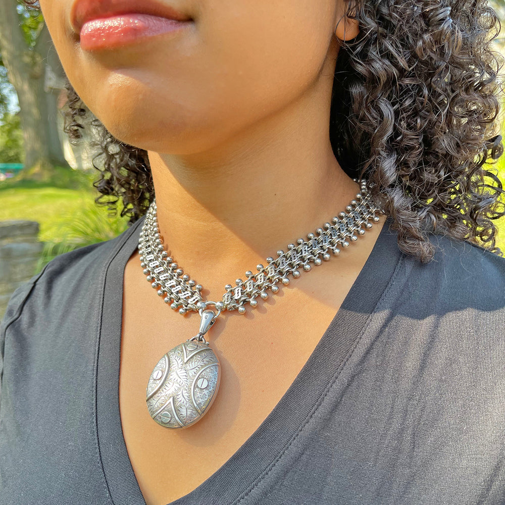 Antique Victorian Collar and Locket Necklace Sterling Silver